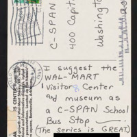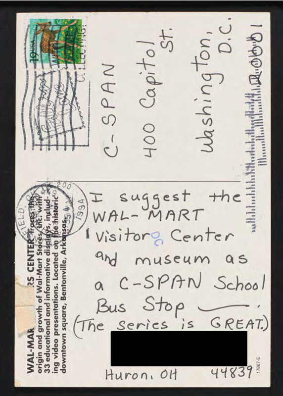 Suggests the Wal-Mart visitor center and museum as a C-SPAN bus destination.