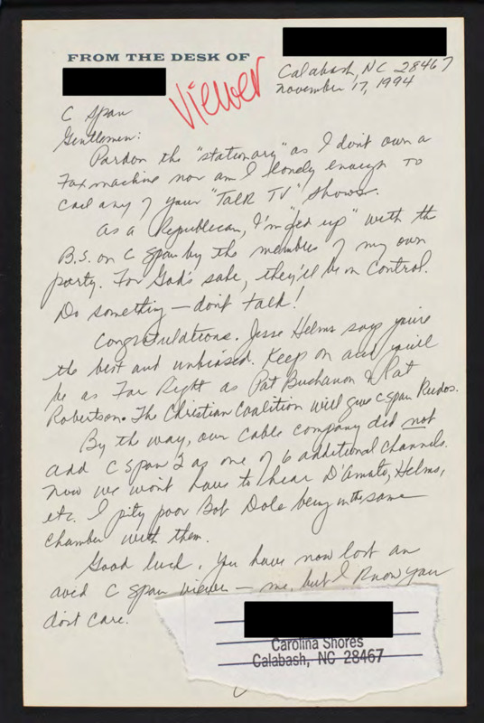 Says they're fed up with members of the Republican Party and specifies Jesse Helms. Argues that the network is becoming as far right as the Christian Coalition.