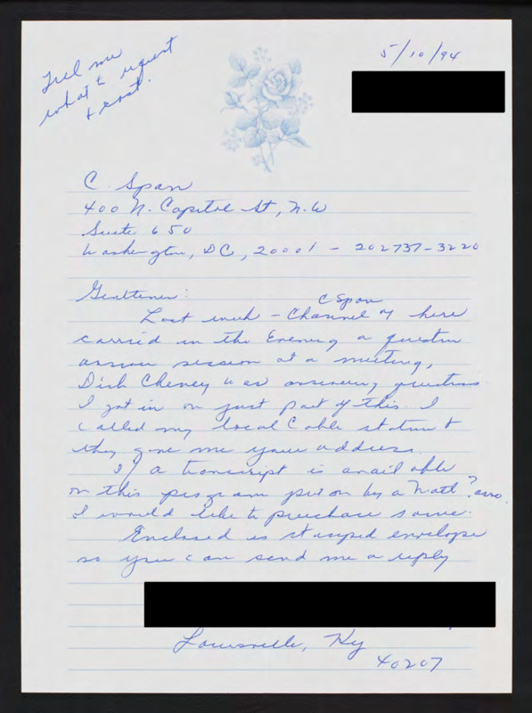 Letter to C-SPAN, 1994-05-10; 40207