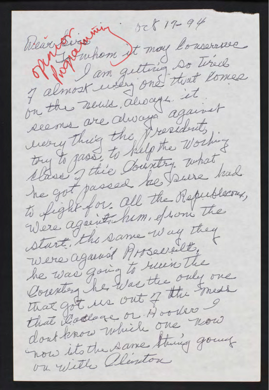 Letter to C-SPAN, 1994-10-17; 33463