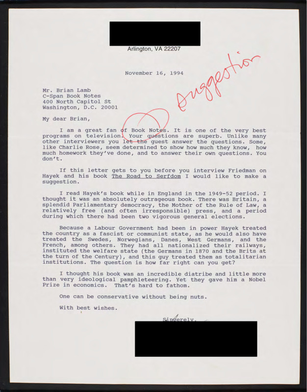 Letter to C-SPAN, 1994-11-16; 22207