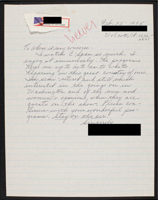Letter to C-SPAN, 1995-02-25; 06716