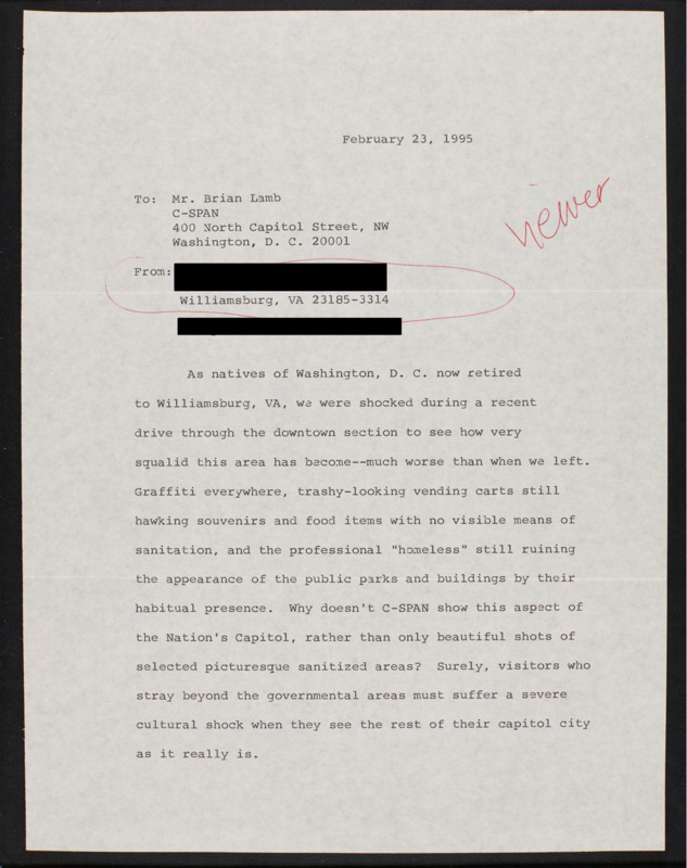 Letter to C-SPAN, 1995-02-23; 23185