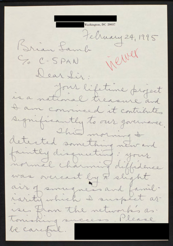 Comments on the program feeling "faintly disgusting" because they felt Brian Lamb appeared smug.