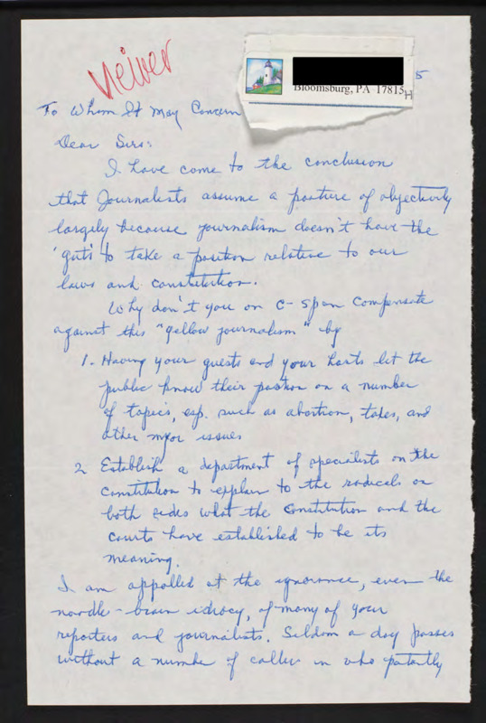 Letter to C-SPAN, 1995-03-02; 17815