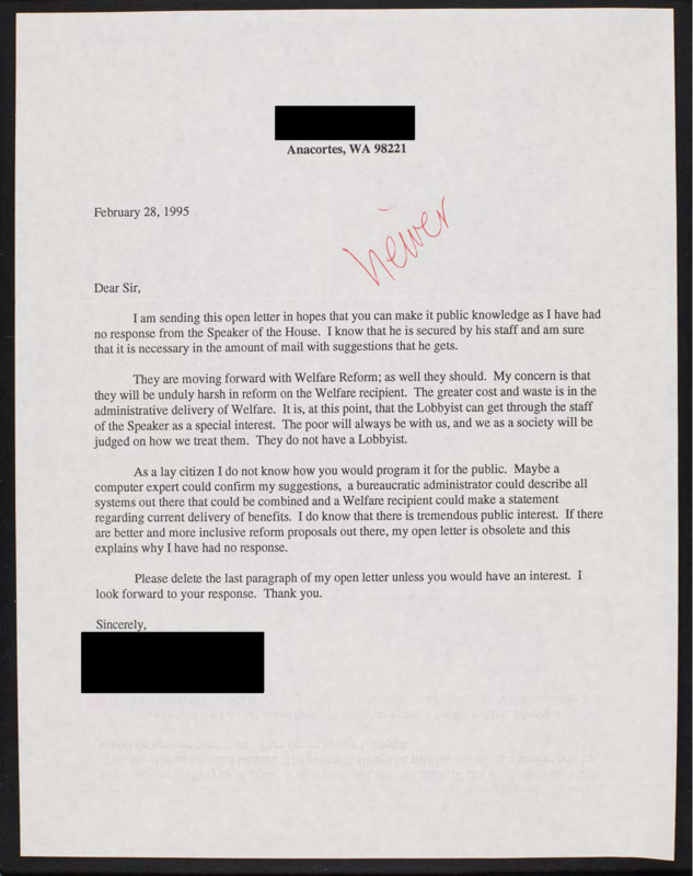 Letter to C-SPAN, 1995-02-28; 98221