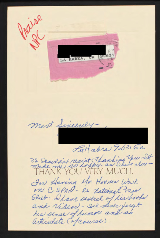 Letter to C-SPAN, 1994-11-07?; 90631