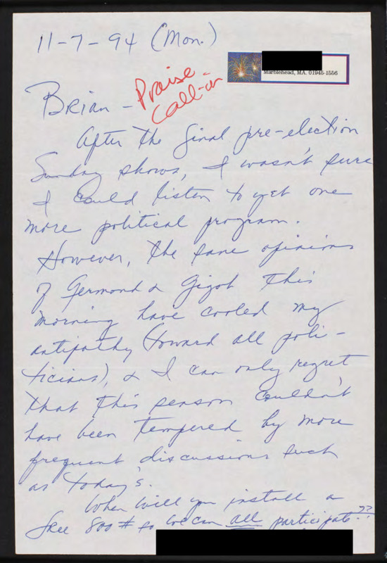 Letter to C-SPAN, 1994-11-07; 01945