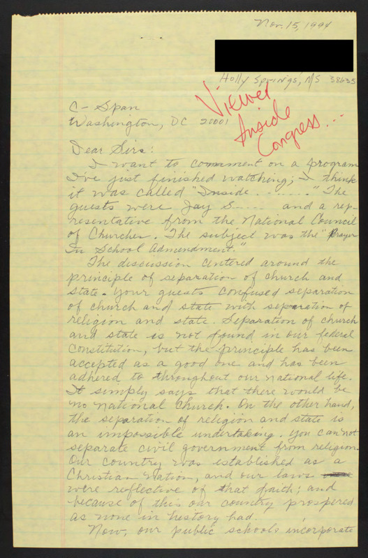Letter to C-SPAN, 1994-11-15; 38635