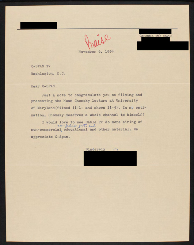 Letter to C-SPAN, 1994-11-06; 65203