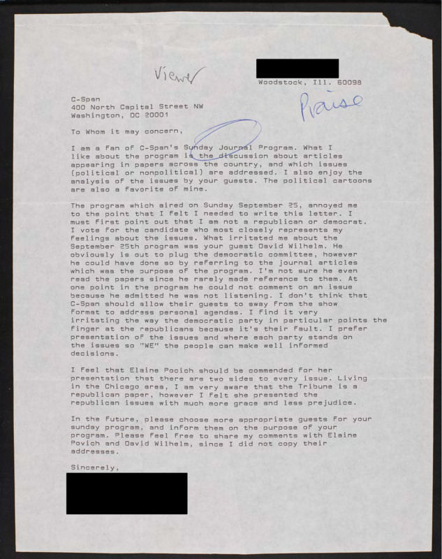 Letter to C-SPAN, n.d.; 60098