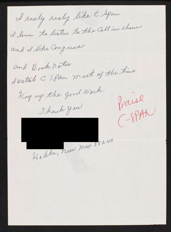 Praises C-SPAN's call-in shows, coverage of Congress, and Booknotes programs.