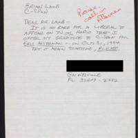 Letter to C-SPAN, 1994-10-31; 32607