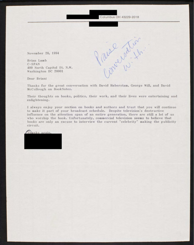 Letter to C-SPAN, 1994-11-28; 43229