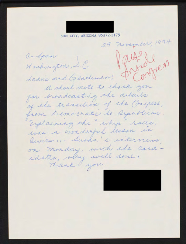 Letter to C-SPAN, 1994-11-29; 85372