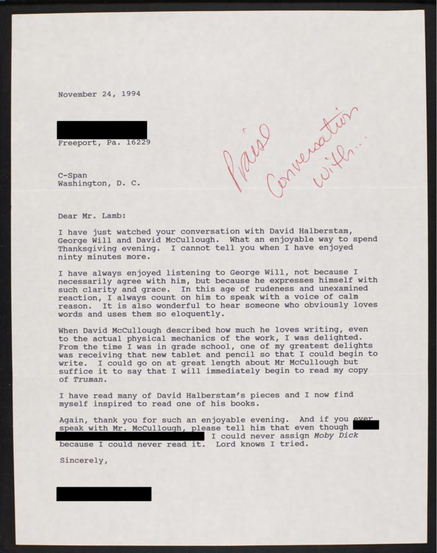 Letter to C-SPAN, 1994-11-24; 16229