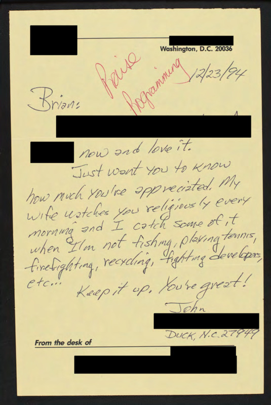 Expresses appreciation for the network and mentions their wife watches the network consistently.