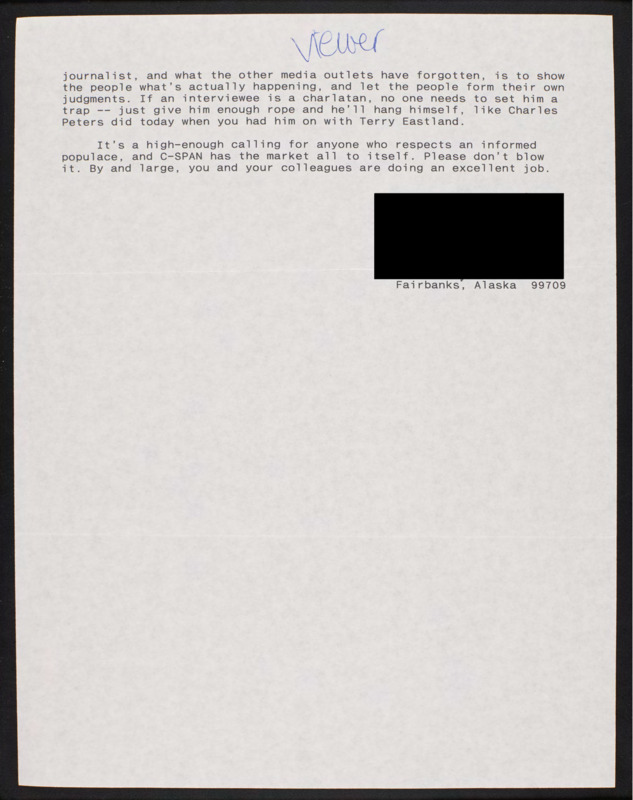 Letter to C-SPAN, n.d.; 99709
