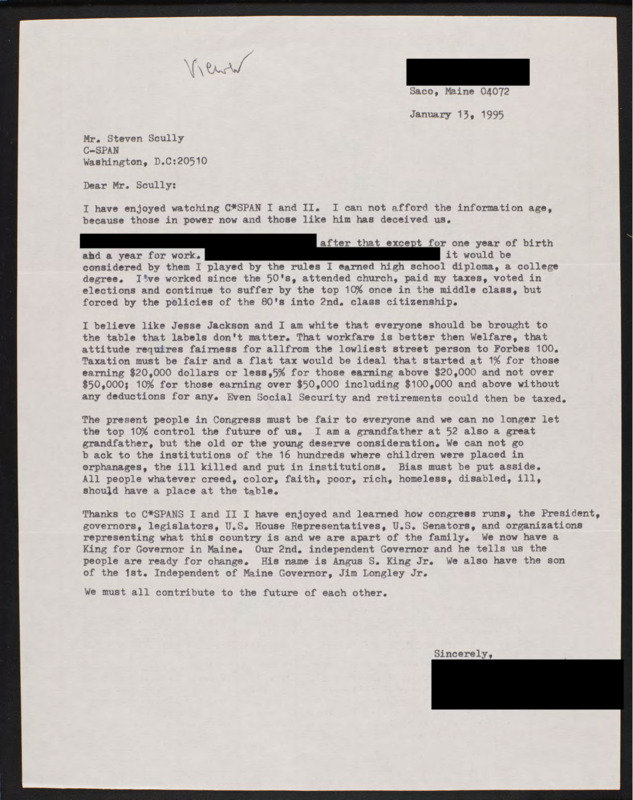 Letter to C-SPAN, 1995-01-13; 04072