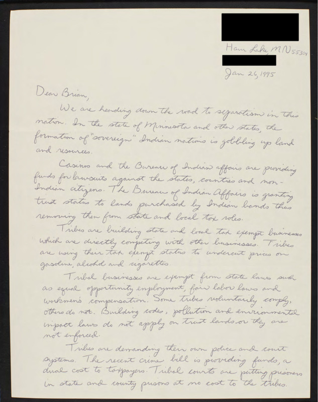Complains about Native American tribes' sovereignty in the state of Minnesota.