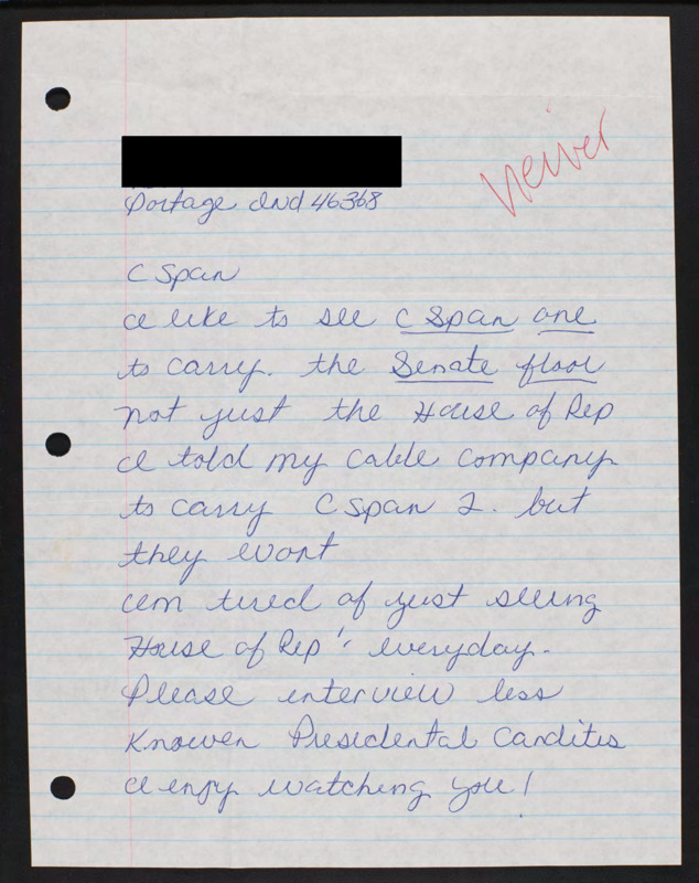 Letter to C-SPAN, n.d.; 46368
