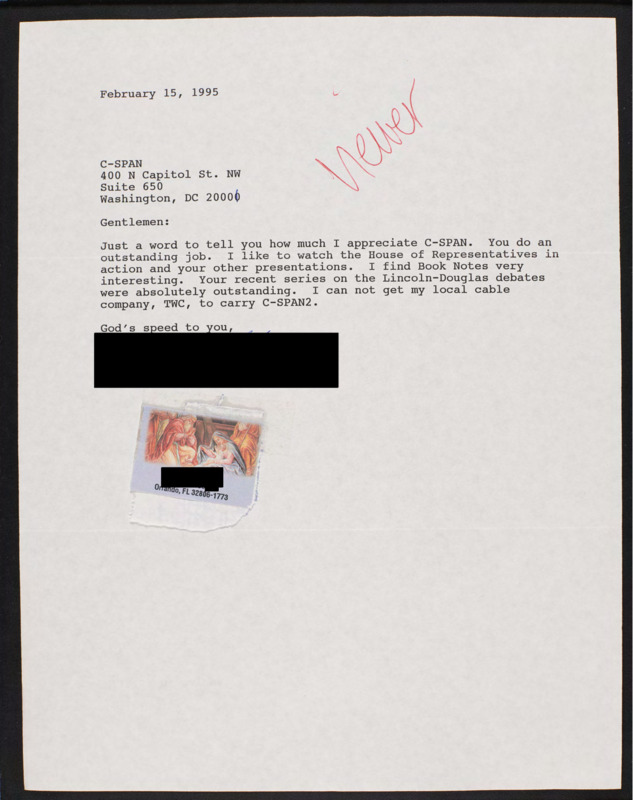 Letter to C-SPAN, 1995-02-15; 32806