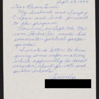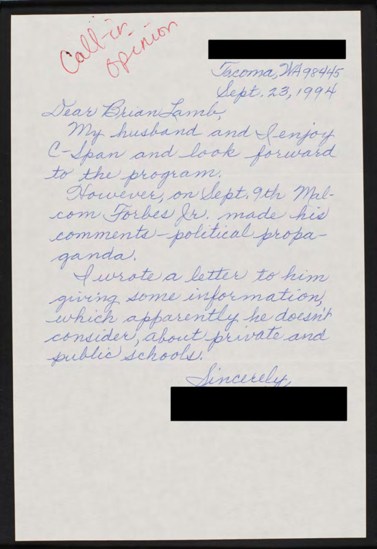 Believes Malcom Forbes, Jr.'s comments about public/private schools was political propaganda.