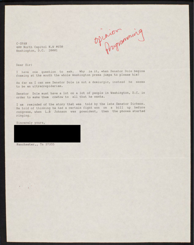Letter to C-SPAN, n.d.; 37355