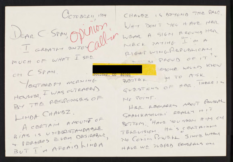 Criticizes Linda Chavez and accuses her of being biased as a "right wing Republican."