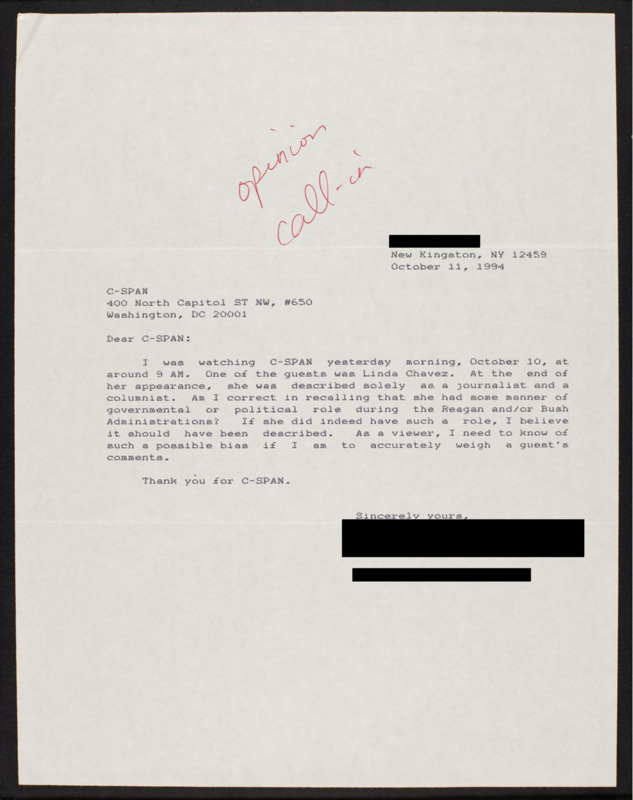 Requests clarification about Linda Chavez's political role during the Reagan/Bush administrations.