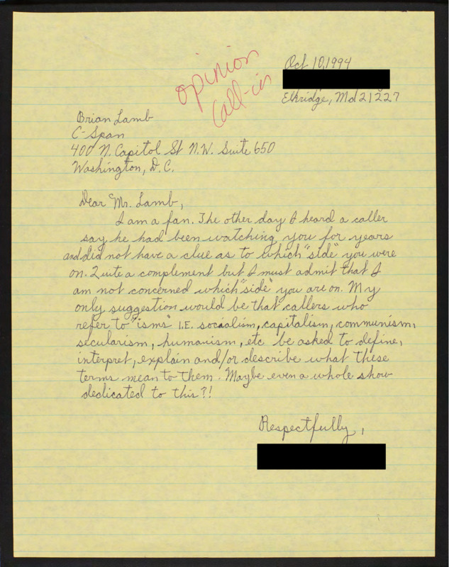 Letter to C-SPAN, 1994-10-10; 21227