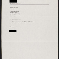 Letter to C-SPAN, 1994-10-23; 92109