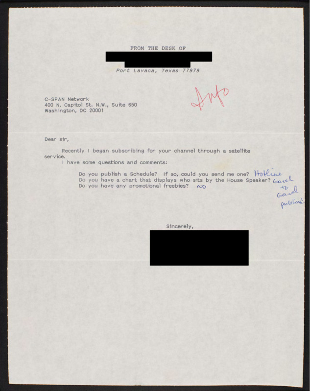 Letter to C-SPAN, n.d.; 77979