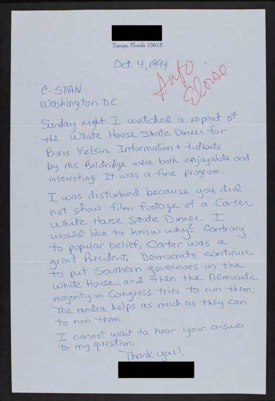 Letter to C-SPAN, 1994-10-04; 33615
