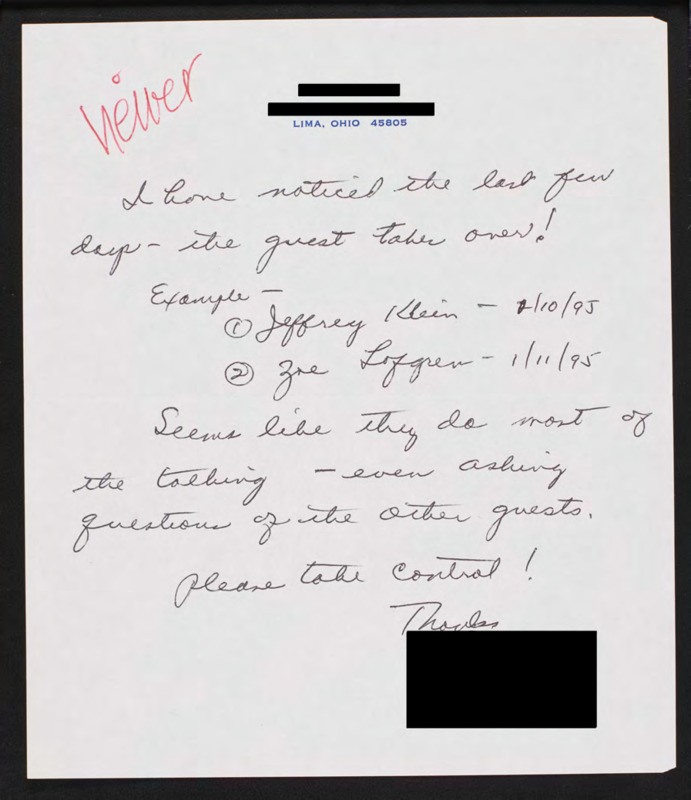 States the network needs to establish control because guests are talking too much and cites two examples.