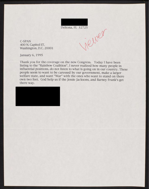 Letter to C-SPAN, 1995-01-06; 32725