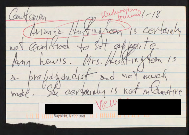 Expresses a dislike for Arianna Huffington and refers to Huffington as a propagandist.