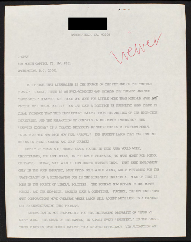 Letter to C-SPAN, n.d.; 93306
