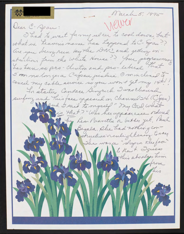 Letter to C-SPAN, 1995-03-05; 30319