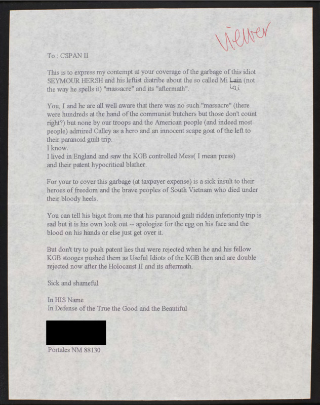 Letter to C-SPAN, n.d.; 88130