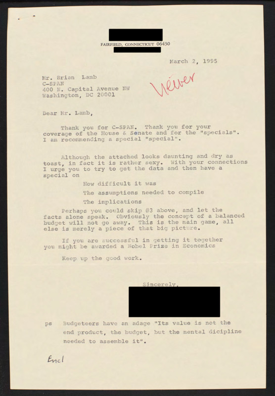 Letter to C-SPAN, 1995-03-02; 06430