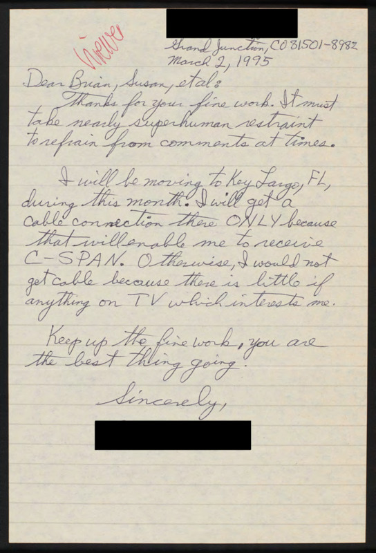 Praises C-SPAN and says they are getting cable when they move because of C-SPAN.