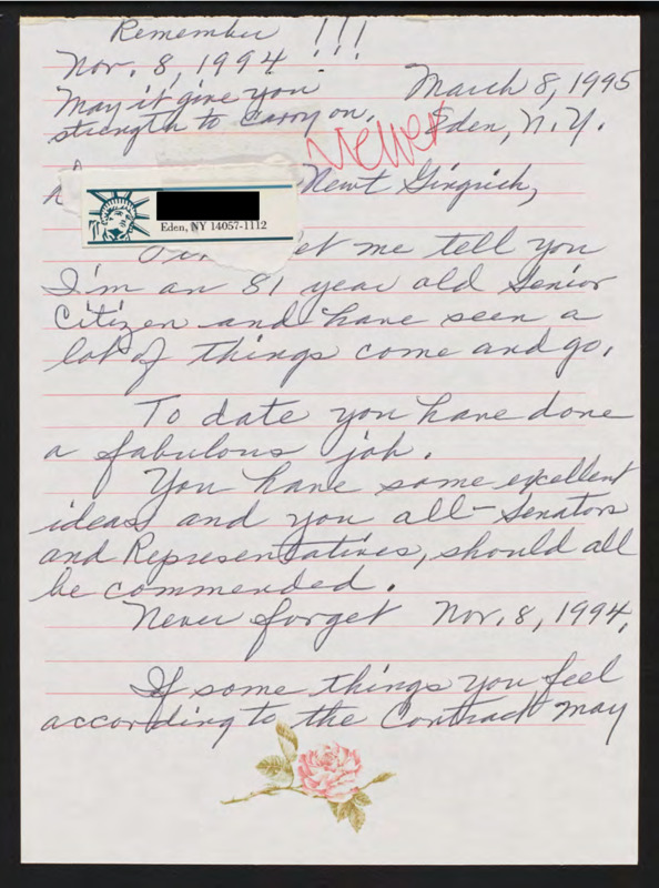 Praises Newt Gingrich and cautions him to be wary of Democrats.