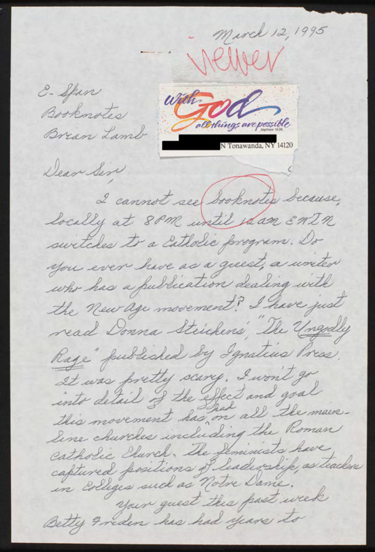Letter to C-SPAN, 1995-03-12; 14120
