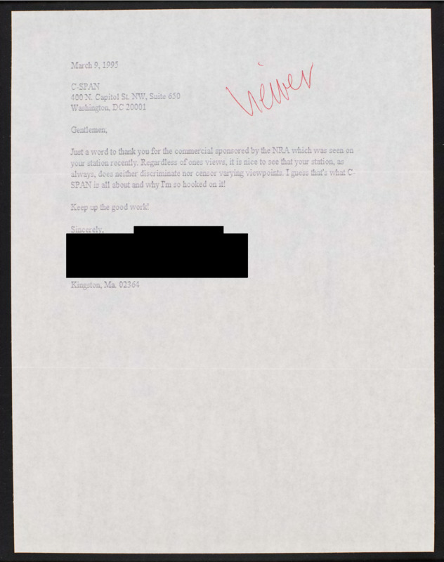 Letter to C-SPAN, 1995-03-09; 02364