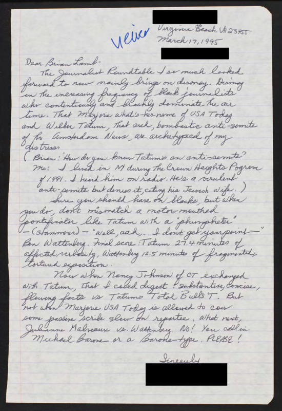 Letter to C-SPAN, 1995-03-17; 23455