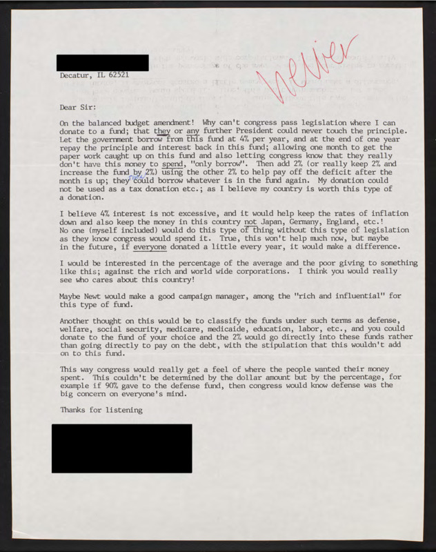 Discusses the balanced budget amendment and a few other changes to the budget.