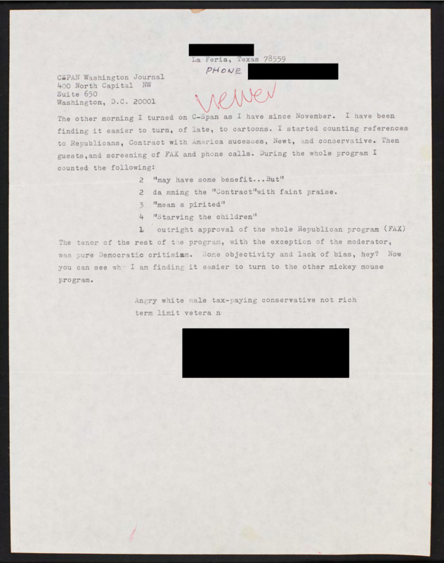 Letter to C-SPAN, n.d.; 78559