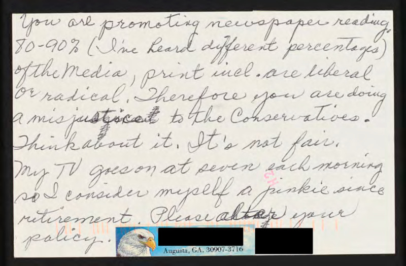 Argues that by promoting newspaper reading, C-SPAN is promoting a liberal agenda.