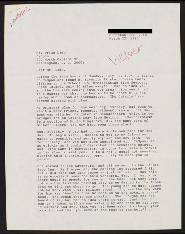 Recounts their experience trying unsuccessfully to visit the C-SPAN Bus but still praises C-SPAN.